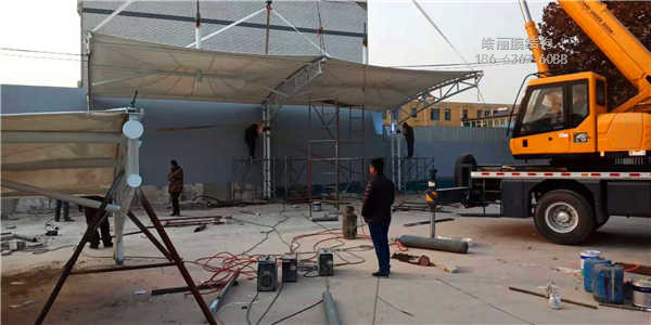 膜結構充電樁,建設單位,保定市榮清國控集團有限公司,地點,交通運輸管理站,本工程采用鋼材規121✘3.5行架立柱,114✘4 89✘3.5行架梁,膜布PVDF1100克刀掛工藝,膜布拉力5200牛,膜布特點,拉力強,耐候性自潔性高,持久耐用.